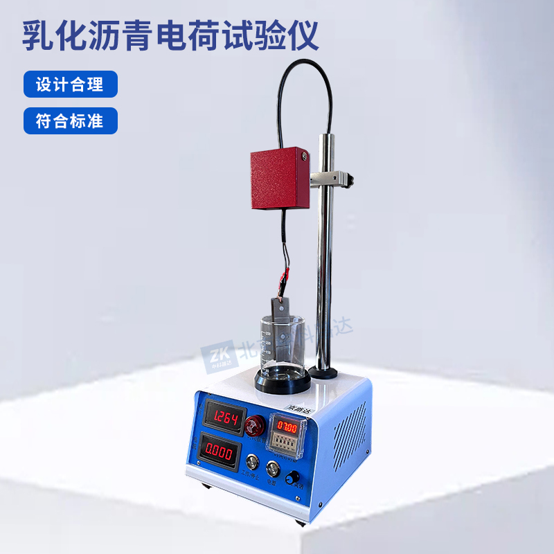 乳化瀝青電荷試驗(yàn)儀用于測(cè)定乳化瀝青微粒離子極性,即離子電荷類型。乳化瀝青的微粒離子電荷是指乳液中分散的微粒所帶電荷的性質(zhì),以確定乳液的類型,帶正電荷的為陽離子乳化瀝青,帶負(fù)電荷的為陰離子乳化瀝青。本儀器通過向?yàn)r青乳液中插入電極,施加直流0-30V 的電場(chǎng),根據(jù)離子運(yùn)動(dòng)并附著的情況判斷乳化瀝青的微粒離子電荷極性。符合JTG3410-2025《公路工程瀝青及瀝青混合料試驗(yàn)規(guī)程》 中的 T0653-2025 乳化瀝青微粒離子電荷試驗(yàn)的標(biāo)準(zhǔn)要求。