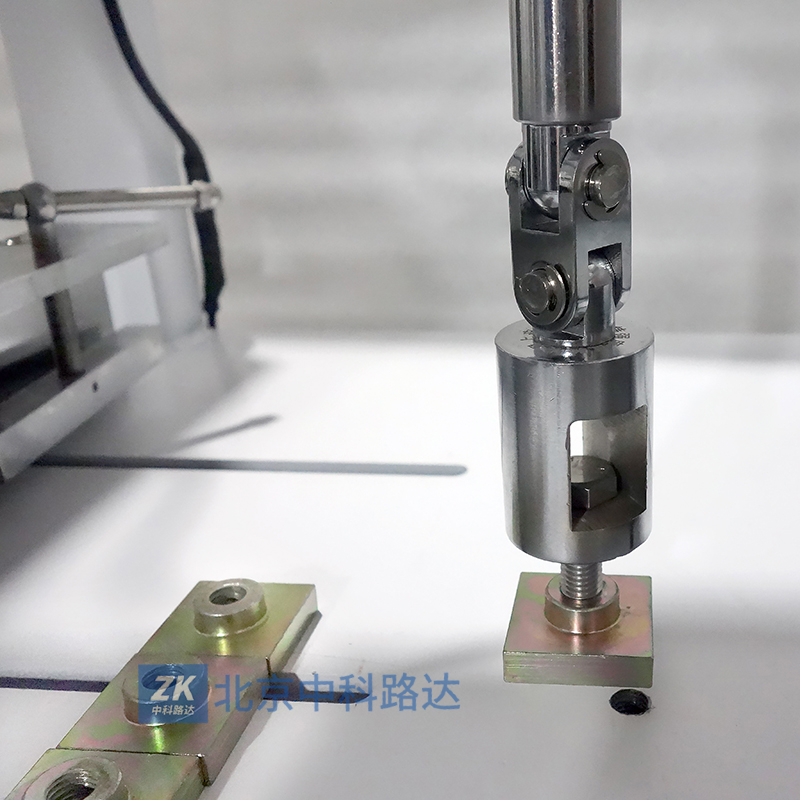 5將試件基板固定在測試儀底板上,如實時力值顯示非零,待顯示穩(wěn)定后,確認測試頭不受力時,把數(shù)值清零將萬向卡頭扶正,測試頭移動到試件附近(移動時卡頭不要碰撞試件,以免損壞),平移測試頭,使試件上丁字頭移入測試頭,測試頭與試件中心偏差應盡量小。準備工作完畢。