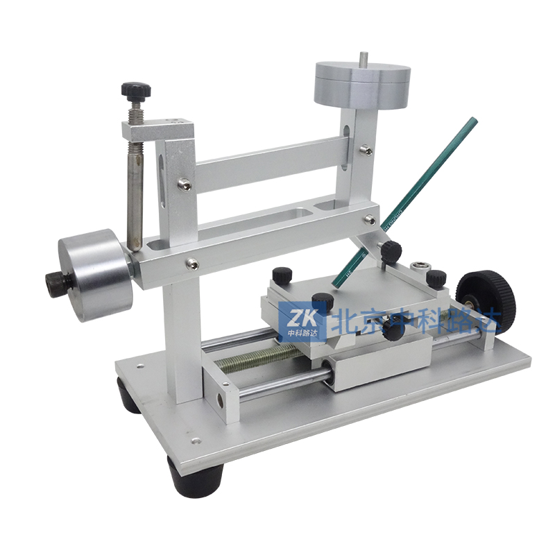 本儀器主要由鉛筆架和試驗(yàn)臺組成,鉛筆架與立柱等組成四連桿結(jié)構(gòu),保證了砝碼的重量垂直作用于鉛筆芯與試驗(yàn)臺的交點(diǎn)上,并使鉛筆與試驗(yàn)臺成45°
