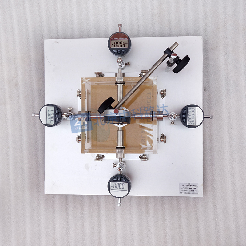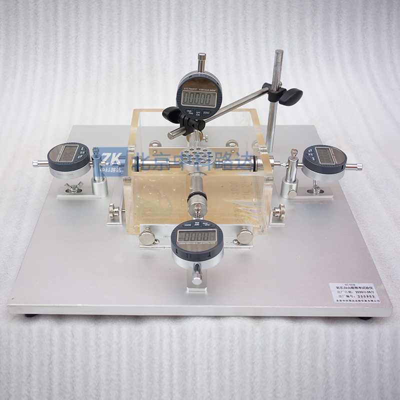 巖石自由膨脹率試驗儀是巖石試件在浸水后產(chǎn)生的徑向和軸向變形分別與試件直徑和高度之比,以百分?jǐn)?shù)表示。該試驗儀器為千分表數(shù)字直讀式結(jié)構(gòu),適用于各類巖石膨脹性試驗中的側(cè)向約束情況下,軸向位移變化的試驗,配有透水板,千分表等試驗裝置。符合TB10115-2014《鐵路工程巖石試驗規(guī)程》和JTG E41-2005《公路工程巖石試驗規(guī)程》標(biāo)準(zhǔn)要求。