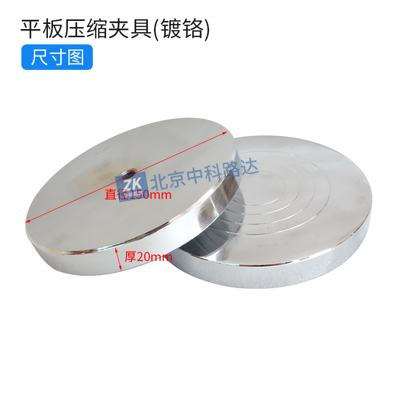 平板壓縮夾具(鍍鉻)配合試驗機(jī)用于各種材料的抗壓試驗,表面磨平鍍鉻,使用方便。