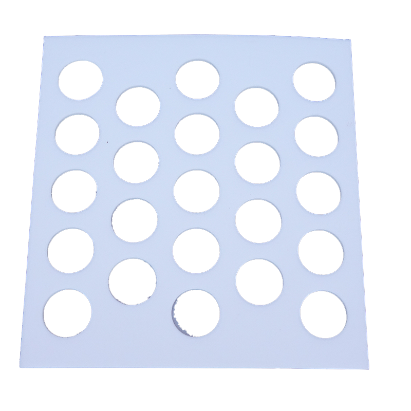 本模板用于陶瓷磚膠粘劑剪切粘結(jié)強度的測定。用聚四氟乙烯制作,用于D類膏狀乳液基膠粘劑和R類反應(yīng)樹脂型膠劑,符合JC/T 547-2017《陶瓷磚膠粘劑》和GB/T 12954.1-2008《建筑膠粘劑試驗方法 第1部分:陶瓷磚膠粘劑試驗方法》的標(biāo)準(zhǔn)要求。