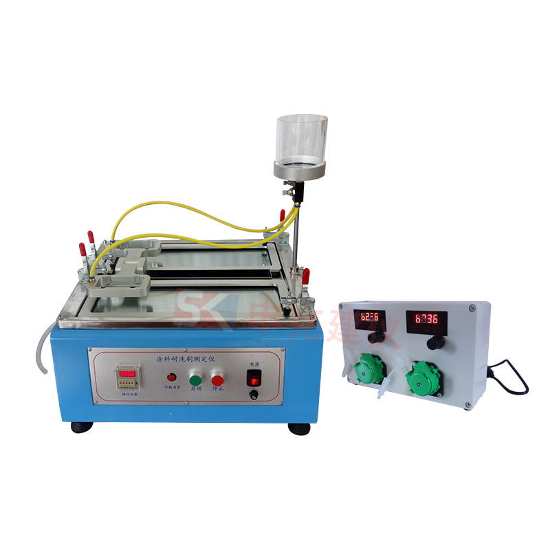 恒流供水器用于配套涂料耐洗涮測量儀使用,以達(dá)到標(biāo)準(zhǔn)要求的約0.04mL的速度滴加洗刷介質(zhì)的要求。流量數(shù)字顯示,控制準(zhǔn)確,兩路可同時工作,分別控制,以滿足兩個試件同時試驗的需要。符合GB/T9266-2009《建筑涂料涂層耐洗刷性的測定》和GB/T9755-2014《合成樹脂乳液外墻涂料》的標(biāo)準(zhǔn)要求。