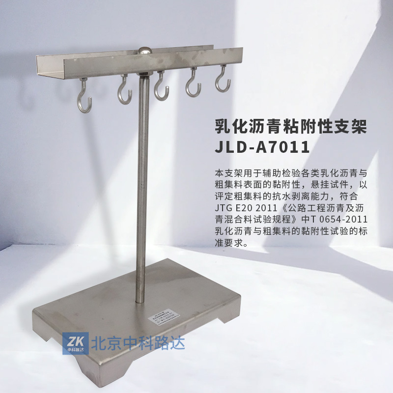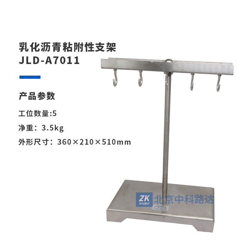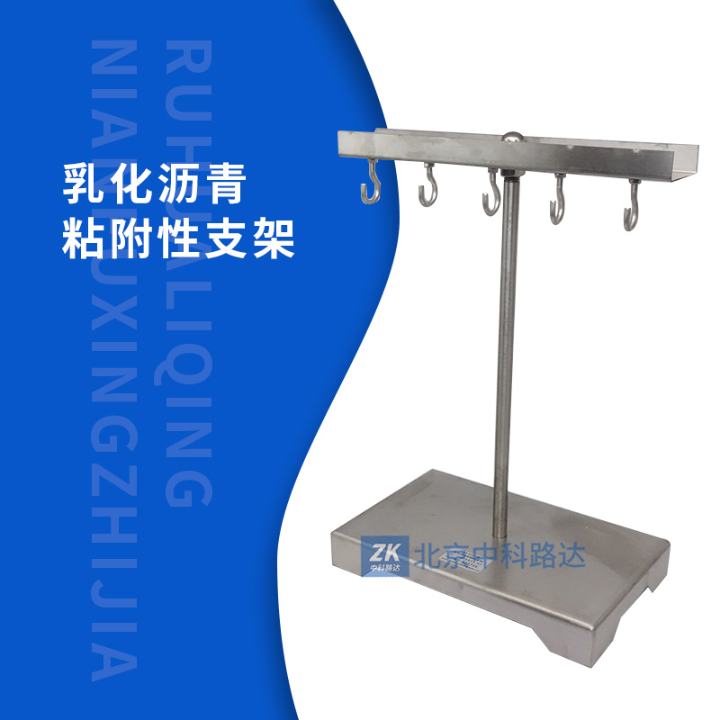 本支架用于輔助檢驗各類乳化瀝青與粗集料表面的黏附性,懸掛試件,以評定粗集料的抗水剝離能力,符合JTG E20 2011《公路工程瀝青及瀝青混合料試驗規(guī)程》中T 0654-2011 乳化瀝青與粗集料的黏附性試驗的標準要求。