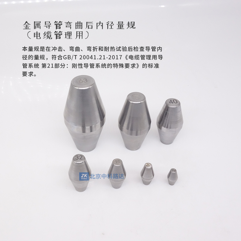 本量規(guī)是在沖擊、彎曲、彎折和耐熱試驗后檢查導(dǎo)管最小內(nèi)徑的量規(guī),符合GB/T 20041.21-2017《電纜管理用導(dǎo)管系統(tǒng) 第21部分:剛性導(dǎo)管系統(tǒng)的特殊要求》的標(biāo)準(zhǔn)要求。