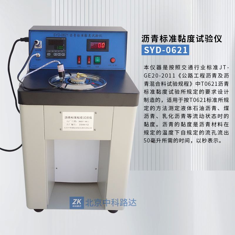本儀器是按照交通行業(yè)標(biāo)準(zhǔn)JTGE20-2011《公路工程瀝青及瀝青混合料試驗(yàn)規(guī)程》中T0621瀝青標(biāo)準(zhǔn)黏度試驗(yàn)所規(guī)定的要求設(shè)計(jì)制造的,適用于按T0621標(biāo)準(zhǔn)所規(guī)定的方法測(cè)定液體石油瀝青、煤瀝青、乳化瀝青等流動(dòng)狀態(tài)時(shí)的黏度。瀝青的黏度是瀝青材料在規(guī)定的溫度下自規(guī)定的流孔流出50毫升所需的時(shí)間,以秒表示。