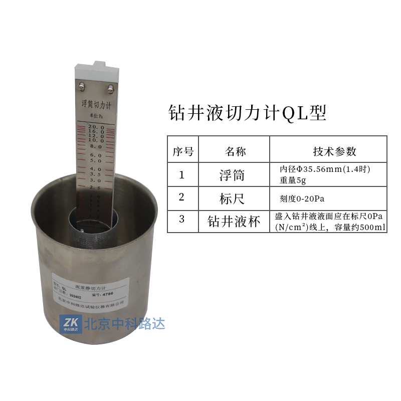 3 | 鉆井液杯 | 盛入鉆井液液面應(yīng)在標(biāo)尺0Pa(N/cm2)線上,容量約500ml |