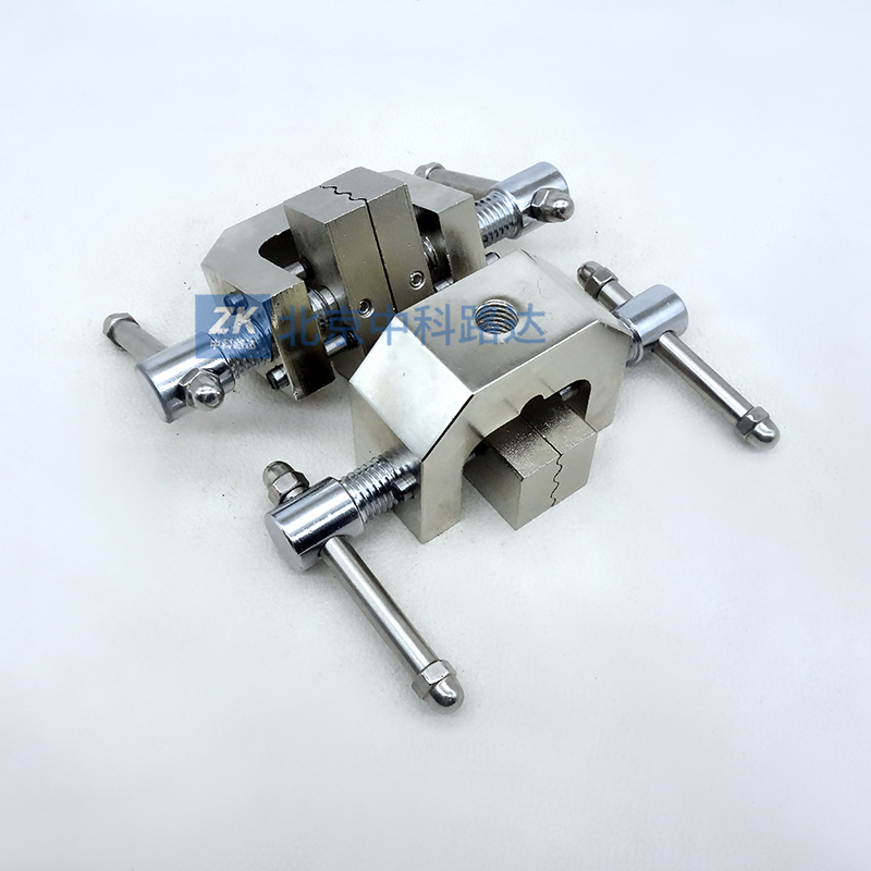 本夾具配合試驗(yàn)機(jī)用于布料,皮革,木材,膠粘劑等材料的拉伸,剪切試驗(yàn),雙邊鎖緊,中心可調(diào),夾片齒形為R2波紋形狀,不易打滑。