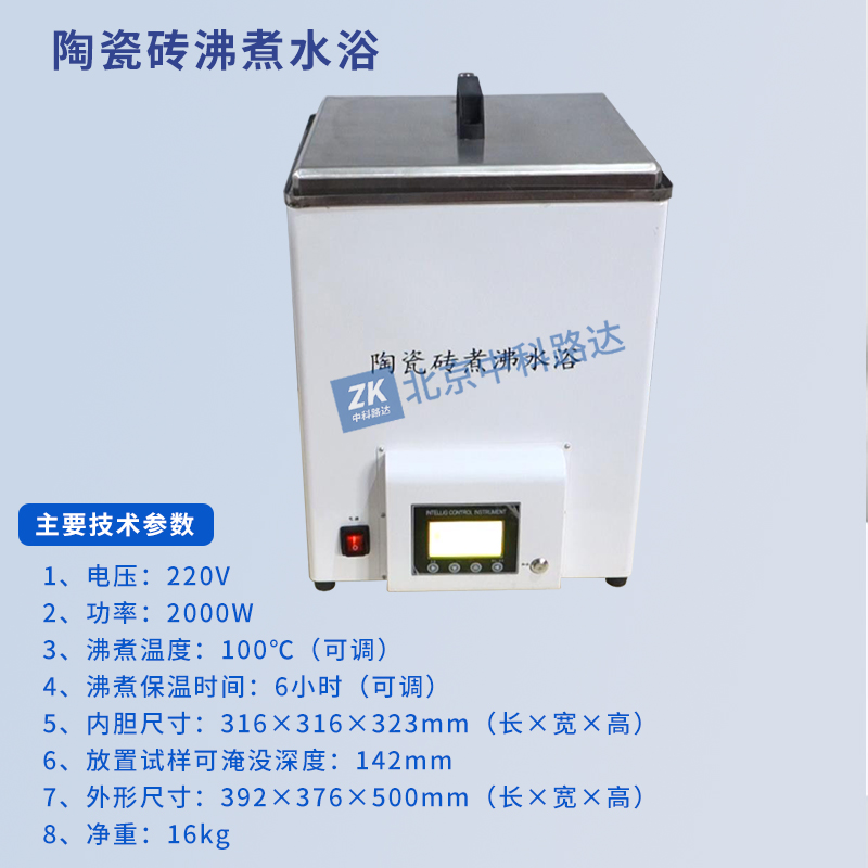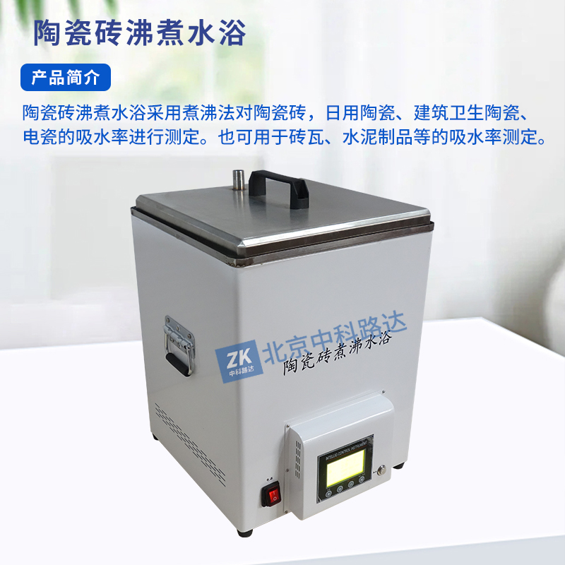 陶瓷磚沸煮水浴采用煮沸法對陶瓷磚,日用陶瓷、建筑衛(wèi)生陶瓷、電瓷的吸水率進(jìn)行測定。也可用于磚瓦、水泥制品等的吸水率測定。主控芯片采用微處理器,全過程自動化控制,也可以手動設(shè)置操作,操作簡單。主機(jī)采用不銹鋼內(nèi)膽及優(yōu)質(zhì)保溫棉制造,具有水位設(shè)置,自動補(bǔ)水,持續(xù)煮沸,防止干燒等功能,并可任意設(shè)置溫度,恒溫時間,水位高度。滿足GB/T 3810.3-2016《陶瓷磚試驗(yàn)方法第3部分 :吸水率、顯氣孔率、表觀相對密度和容重的測定》、GB/T 3299-2011《日用陶瓷器吸水率測定方法》等標(biāo)準(zhǔn)要求。