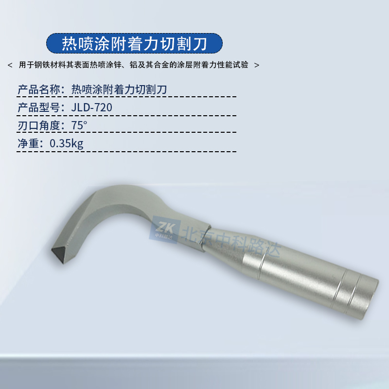 熱噴涂附著力切割刀主要用于鋼鐵材料其表面熱噴涂鋅、鋁及其合金的涂層附著力性能試驗。采用硬質(zhì)合金刃口,耐磨性好,刀刃鋒利,硬度高,符合GB/T 9793-2012《熱噴涂 金屬和其他無機覆蓋層 鋅、鋁及其合金》的標準要求。...