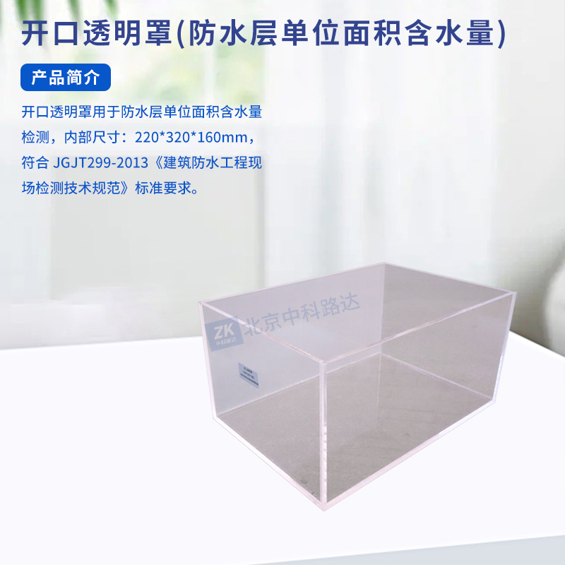 開口透明罩用于防水層單位面積含水量檢測,內(nèi)部尺寸:220*320*160mm,符合 JGJT299-2013《建筑防水工程現(xiàn)場檢測技術(shù)規(guī)范》標(biāo)準(zhǔn)要求。
