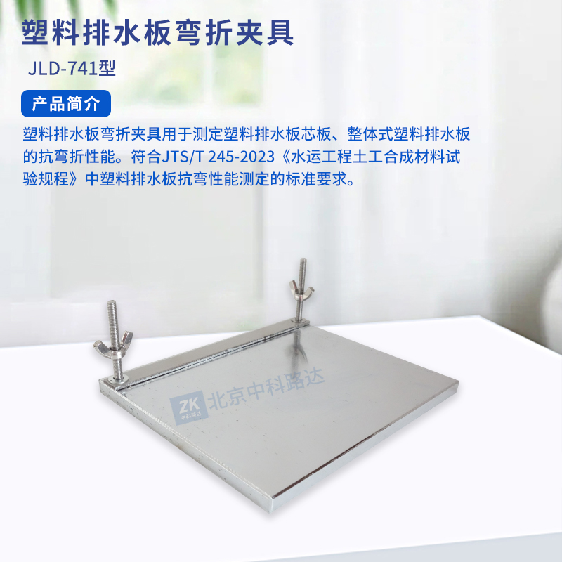 塑料排水板彎折夾具用于測(cè)定塑料排水板芯板、整體式塑料排水板的抗彎折性能。符合JTS/T 245-2023《水運(yùn)工程土工合成材料試驗(yàn)規(guī)程》中塑料排水板抗彎性能測(cè)定的標(biāo)準(zhǔn)要求。