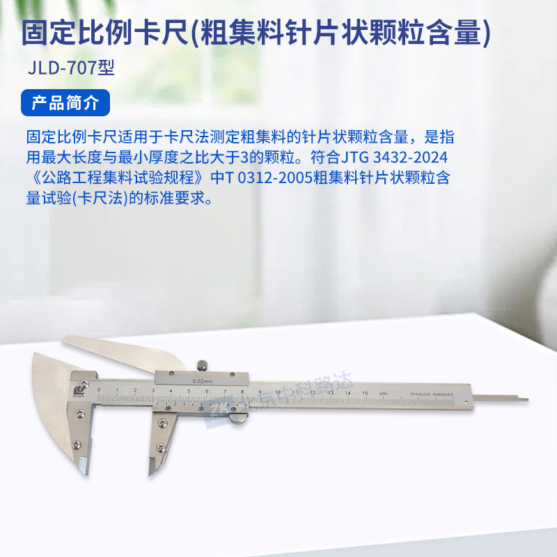固定比例卡尺適用于卡尺法測(cè)定粗集料的針片狀顆粒含量,是指用最大長(zhǎng)度與最小厚度之比大于3的顆粒。符合JTG 3432-2024《公路工程集料試驗(yàn)規(guī)程》中T 0312-2005粗集料針片狀顆粒含量試驗(yàn)(卡尺法)的標(biāo)準(zhǔn)要求。...