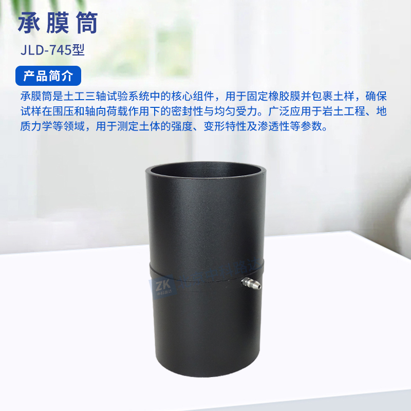 承膜筒是土工三軸試驗(yàn)系統(tǒng)中的核心組件,專門用于固定橡膠膜并包裹土樣,確保試樣在圍壓和軸向荷載作用下的密封性與均勻受力。廣泛應(yīng)用于巖土工程、地質(zhì)力學(xué)等領(lǐng)域,用于測(cè)定土體的強(qiáng)度、變形特性及滲透性等參數(shù)。...