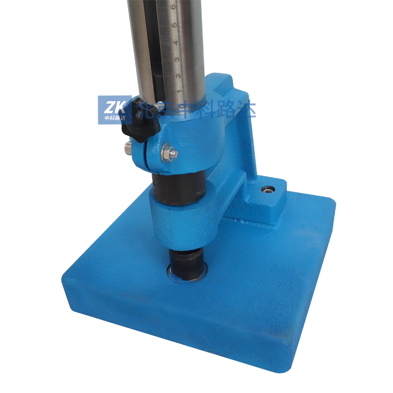 根據(jù)GB/T1732-1993《漆膜耐沖擊測定法》標(biāo)準(zhǔn)設(shè)計,利用重物從高處落下沖擊漆膜,以測定漆膜的沖擊強度。由控制器螺釘將重錘定在所要求的高度上,其高度由定位標(biāo)上可讀出,按壓控制器螺釘則控制器彈簧被壓縮,這時控制器滑塊的圓孔與控制器上蓋及控制器下底的圓孔對正掛鉤,使所聯(lián)結(jié)的重錘落下,撞擊沖桿,沖桿向下作用在事先放在枕墊塊上的是樣板上,之后提升重錘體,取出試驗過的樣板以觀察樣板上漆膜試驗情況。...