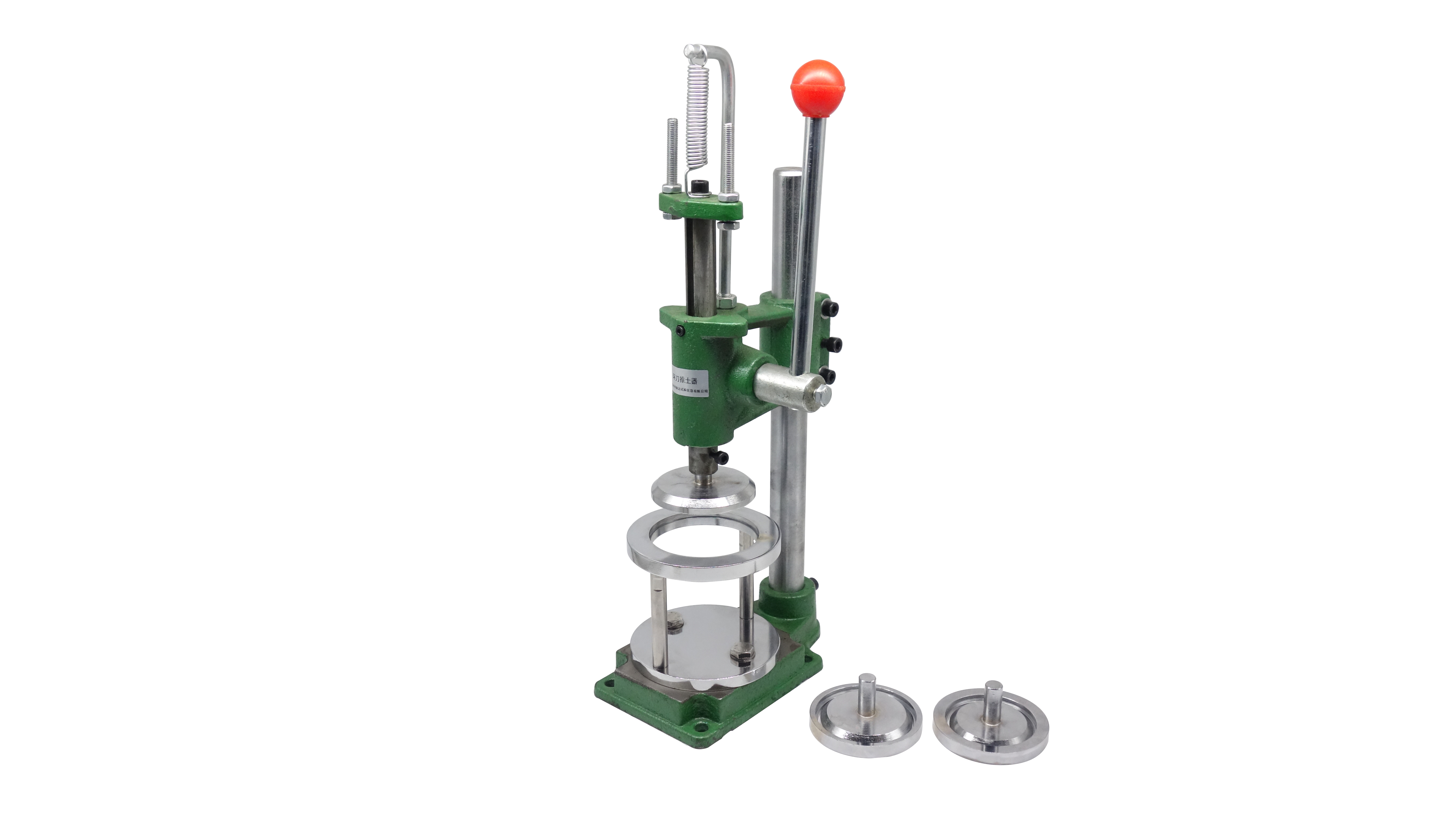 環(huán)刀推土器用于環(huán)刀取土后試件的推出,操作簡單,快捷方便,備用三種壓頭和支座,可用于φ61.8mm,φ70mm 和φ79.8mm三種尺寸試件。