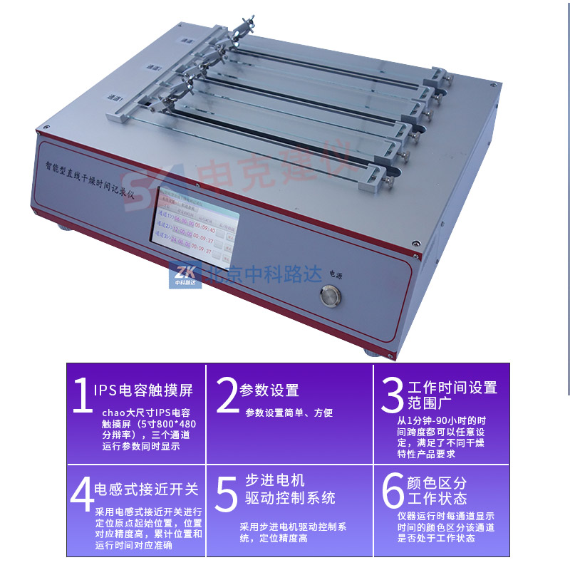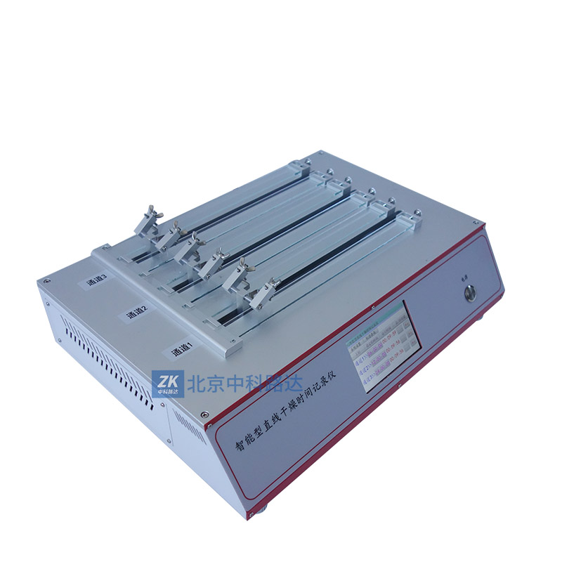 這是一款功能強(qiáng)大的智能型的直線干燥時間記錄儀,可以滿足不同干燥時間特性的樣品的全面分析。帶半球型觸點(diǎn)的劃桿安裝在滑架上。劃桿由滑架帶動,與新涂膜層接觸,由一端開始,在試樣上作縱向移動??赏ㄟ^儀器的“軌跡查詢”功能查看對應(yīng)軌跡的各個干燥階段。它有三個可以單獨(dú)設(shè)定任意運(yùn)行時間的通道(每個通道有兩條工作軌道),符合ASTM D 5895的標(biāo)準(zhǔn)要求。
