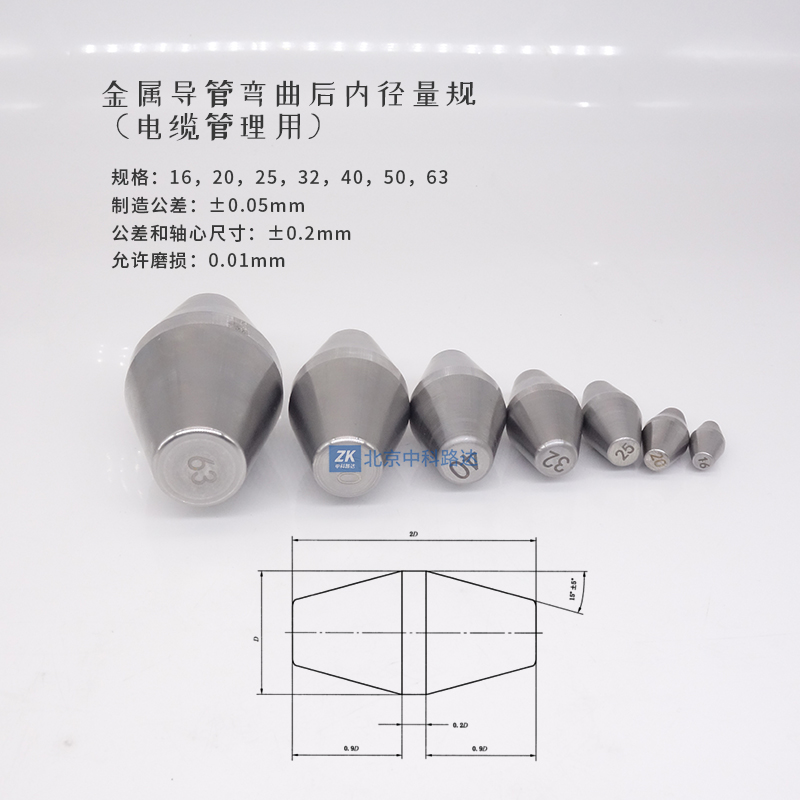 本量規(guī)是在沖擊、彎曲、彎折和耐熱試驗后檢查導(dǎo)管最小內(nèi)徑的量規(guī),符合GB/T 20041.21-2017《電纜管理用導(dǎo)管系統(tǒng) 第21部分:剛性導(dǎo)管系統(tǒng)的特殊要求》的標(biāo)準(zhǔn)要求。