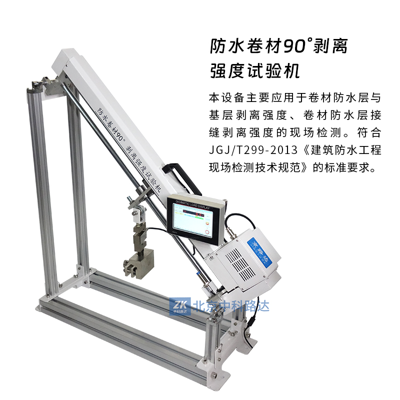 本設備主要應用于卷材防水層與基層剝離強度、卷材防水層接縫剝離強度的現(xiàn)場檢測。符合JGJ/T299-2013《建筑防水工程現(xiàn)場檢測技術規(guī)范》的標準要求。