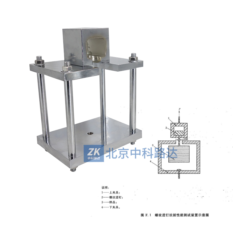本夾具配合試驗(yàn)機(jī)用于螺紋道釘拉拔強(qiáng)度試驗(yàn)。符合 CJ/T399-2012聚氨酯泡沫合成軌枕》中附錄F:螺紋道釘抗拔強(qiáng)度試驗(yàn)方法的標(biāo)準(zhǔn)要求。