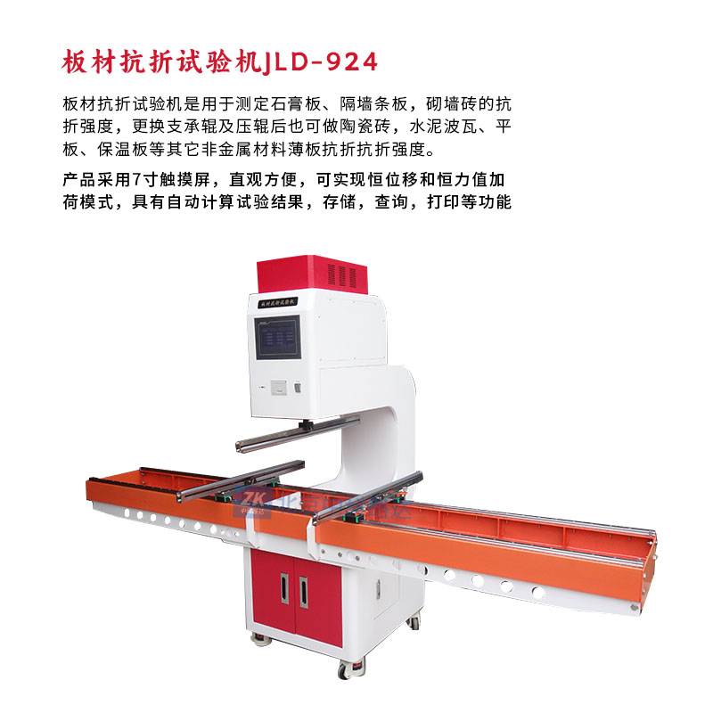 板材抗折試驗(yàn)機(jī)是用于測(cè)定石膏板、隔墻條板,砌墻磚的抗折強(qiáng)度,更換支承輥及壓輥后也可做陶瓷磚,水泥波瓦、平板、保溫板等其它非金屬材料薄板抗折抗折強(qiáng)度。產(chǎn)品采用7寸觸摸屏,直觀方便,可實(shí)現(xiàn)恒位移和恒力值加荷模式,具有自動(dòng)計(jì)算試驗(yàn)結(jié)果,存儲(chǔ),查詢,打印等功能。