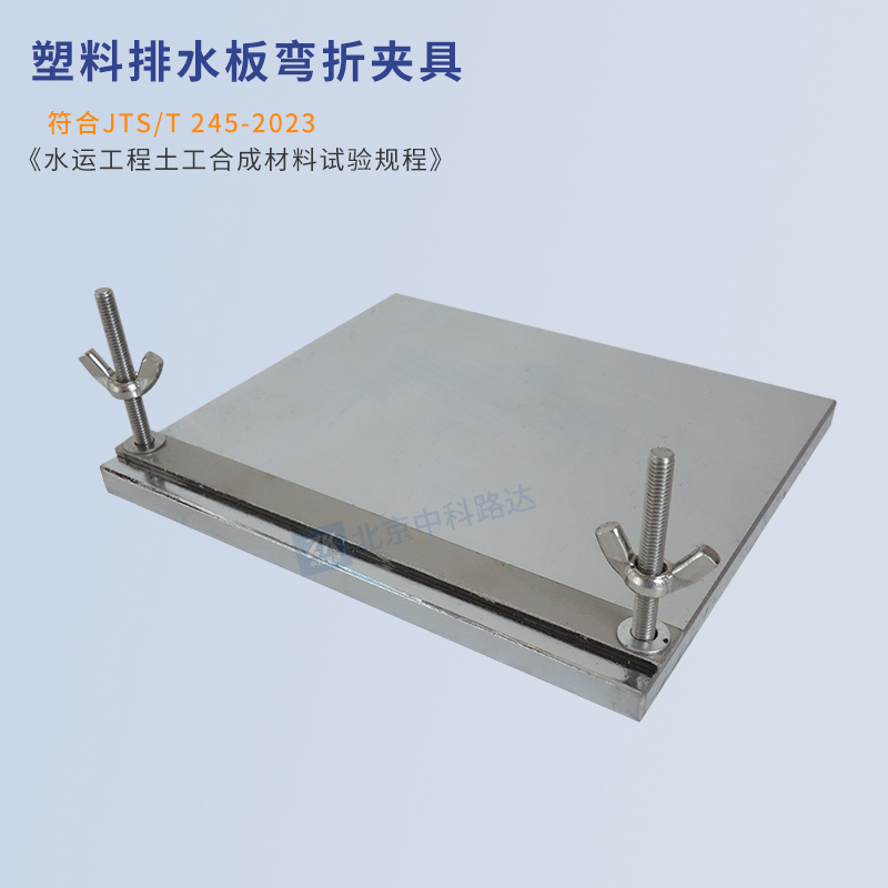 塑料排水板彎折夾具用于測(cè)定塑料排水板芯板、整體式塑料排水板的抗彎折性能。符合JTS/T 245-2023《水運(yùn)工程土工合成材料試驗(yàn)規(guī)程》中塑料排水板抗彎性能測(cè)定的標(biāo)準(zhǔn)要求。