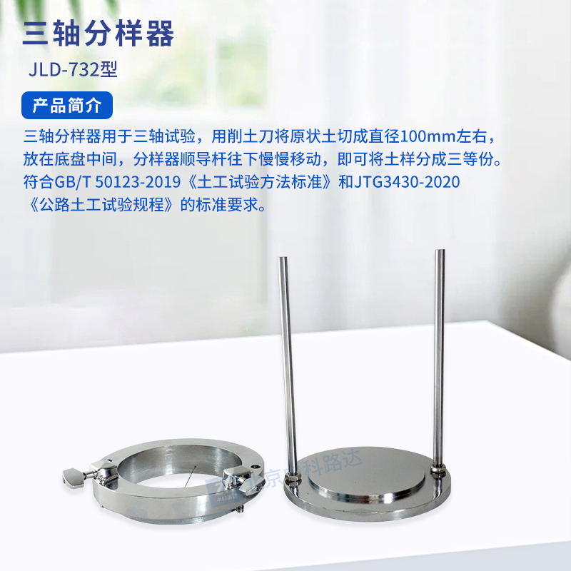 一、產(chǎn)品簡介三軸分樣器用于三軸試驗,用削土刀將原狀土切成直徑100mm左右,放在底盤中間,分樣器順導(dǎo)桿往下慢慢移動,即可將土樣分成三等份。符合GB/T 50123-2019《土工試驗方法標準》和JTG3430-2020《公路土工試驗規(guī)程》的標準要求。...